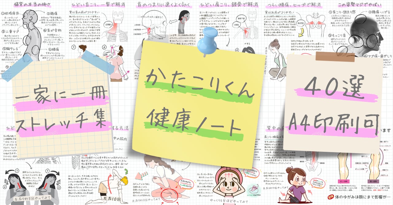 理学療法士が「首こり解消には鎖骨が効く」て推してたやつ 首こりに悩む人の8割が胸鎖乳突筋(きょうさにゅうとつきん)が硬くなっています。呼吸を止めることなく、無理のない範囲でストレッチしてみてください。痛みや痺れが悪化する人は絶対に無理をせず、ご相談ください。 ■ A4サイズ ■ 発送・注文に関する情報や注意事項 本商品はデジタルコンテンツです。 ご購入後すぐにダウンロードいただけます。 物理的な商品の発送はございません。 ※スマホ・PCいずれからでもダウンロード可能です。 図解の修正や文字変更などのご依頼は、 ホームページのnoteをご一読してからお願い致します。